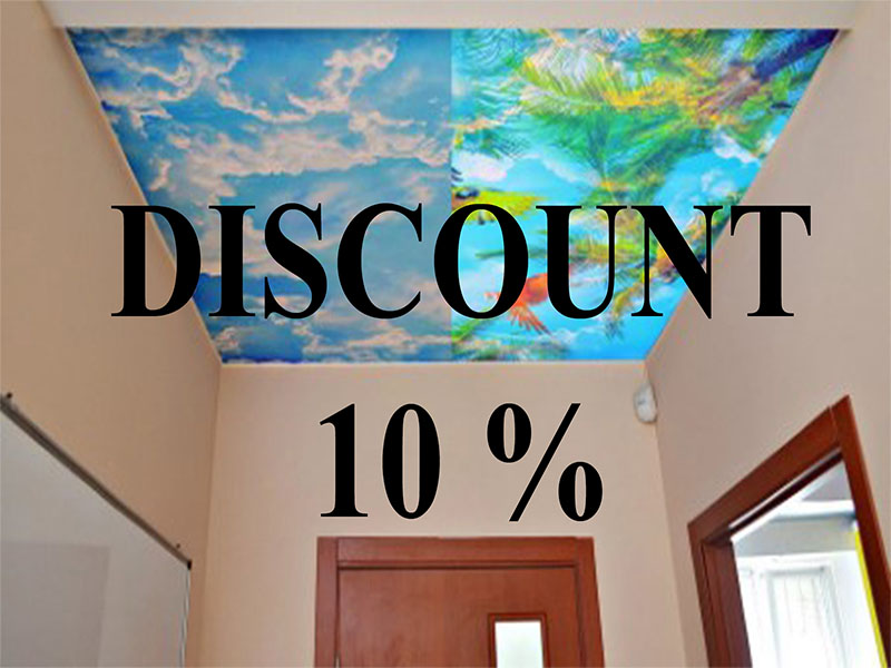 При заказе натяжных потолков «SMART ПОТОЛОК» на всю квартиру (3 и более потолков) скидка на итоговую стоимость заказа — 10%